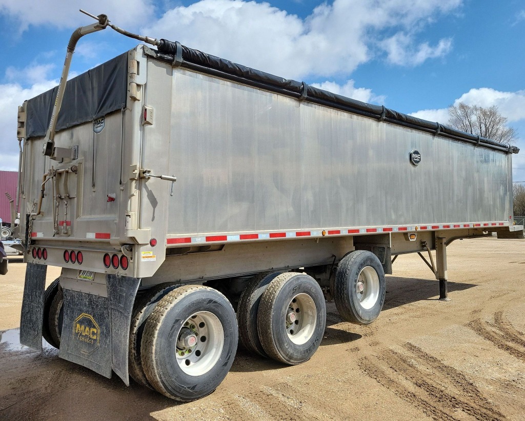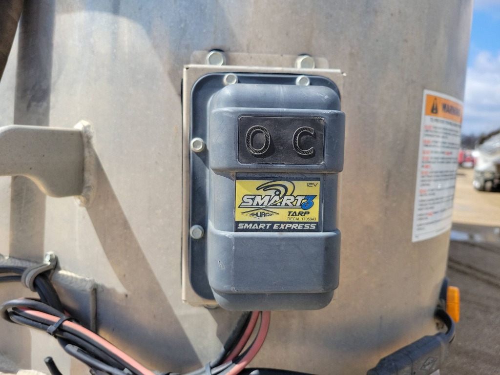 The trailer is in very good working condition. The aluminum body is solid with no cracks or major dents. The ram is strong and operates smoothly, and the air-operated end gate works without issue. It's equipped with a poly liner and a roll tarp, both in good shape. The suspension and air brakes are responsive, and the tires and aluminum wheels are in good condition, no uneven wear. The trailer was recently checked, and it's ready to go straight to work. It's a clean, well-maintained unit with no known issues.